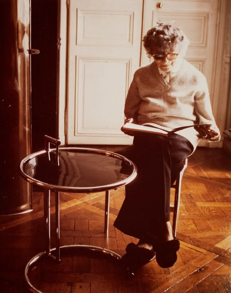 Eileen Gray was an Anglo-Irish architect and furniture designer and a pioneer of the Modern Movement in architecture. Born in Enniscorthy, County Wexford, Ireland in 1878, Eileen Gray spent her childhood in London and was among the first women to be admitted to the Slade, where she took up painting in 1898 before undergoing an apprenticeship in a London lacquer workshop. The experience she gained in working in this highly specialised medium was to influence her profoundly when she moved to Paris in 1902. After further training in lacquer work and cabinet making, she quickly established herself as one of the leading designers of the lacquered screens and decorative panels so beloved by the followers of art deco, and even managed to cause a riot by showing a stark white lacquered boudoir at the 14th Salon des Artistes Décorateurs in 1923. Over her career, she was associated with many notable European artists of her era, including Kathleen Scott, Adrienne Gorska, Le Corbusier, and Jean Badovici, with whom she was romantically involved. Eileen Gray’s design studio embraced muted tones and pieces of furniture that broke design conventions.