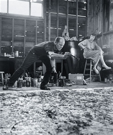 Jackson Pollock working in his design studio. Photograph Credit: Jackson Pollock.